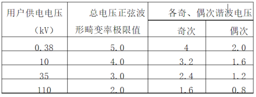 電網中任一點的電壓正弦波形畸變率均不得超過表1規(guī)定的極限值。