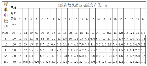 限制用戶非線性用電設備注入電網的諧波電流是控制電網電壓正弦波形畸變的關鍵。任一用戶注入電網連接點的各次諧波,諧波電流均不得超過表2中規(guī)定的允許值。